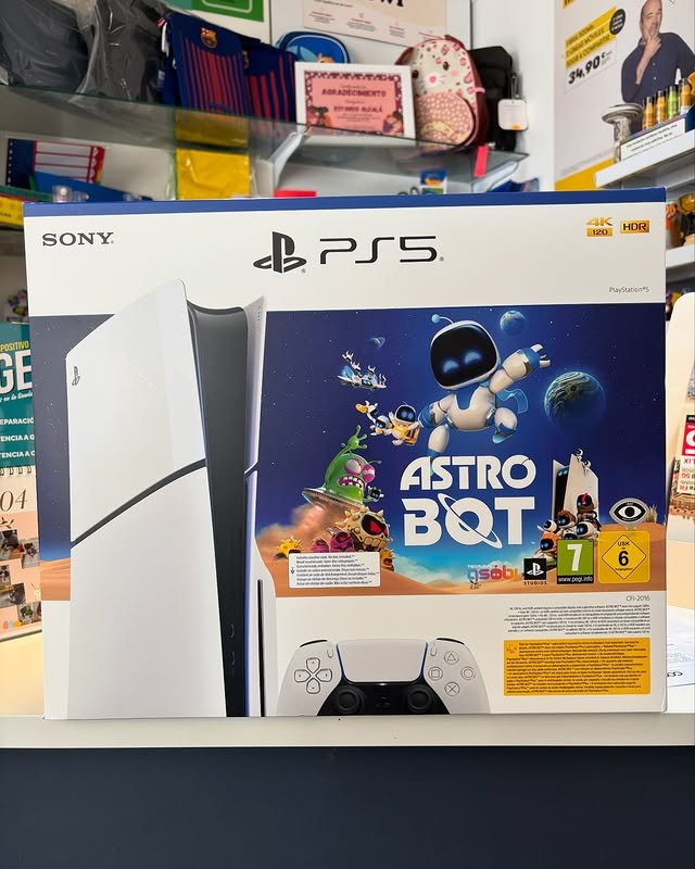 Sony PlayStation 5 edicion Astro Bot con lector de discos Blu-ray 4K. Incluye el juego Astro Bot, mando inalambrico DualSense y todos los cables. GPU de 10.28 TFLOPS, SSD ultrarapido de 825GB, audio 3D Tempest y retrocompatibilidad con PS4. Modelo disco y digital disponibles. Reponemos PS5 en NewTec Alcala!